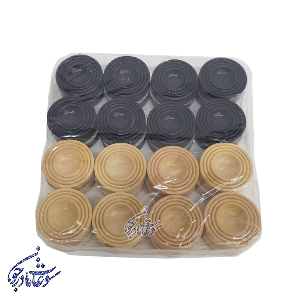 سایز مهره ها کاملا استاندارد می باشد و برای تخته نرد های سایز ۵۰ و ۴۰سانتی استفاده میشود. تعداد ۱۶ عدد مهره روشن و تعداد ۱۶ عدد مهره تیره که روی هم ۳۲ مهره است، در این پک قرار دارد.