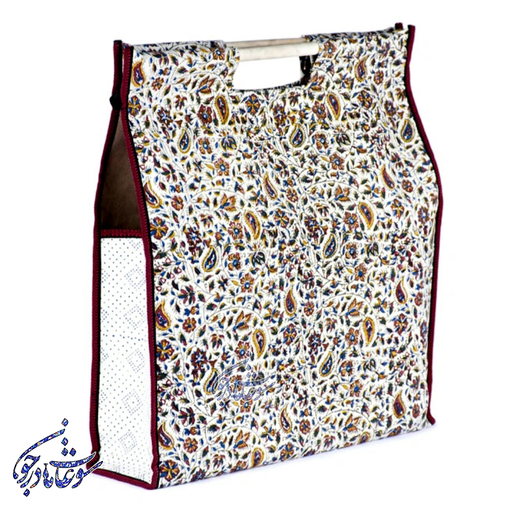 کیف قلمکار با دسته چوبی